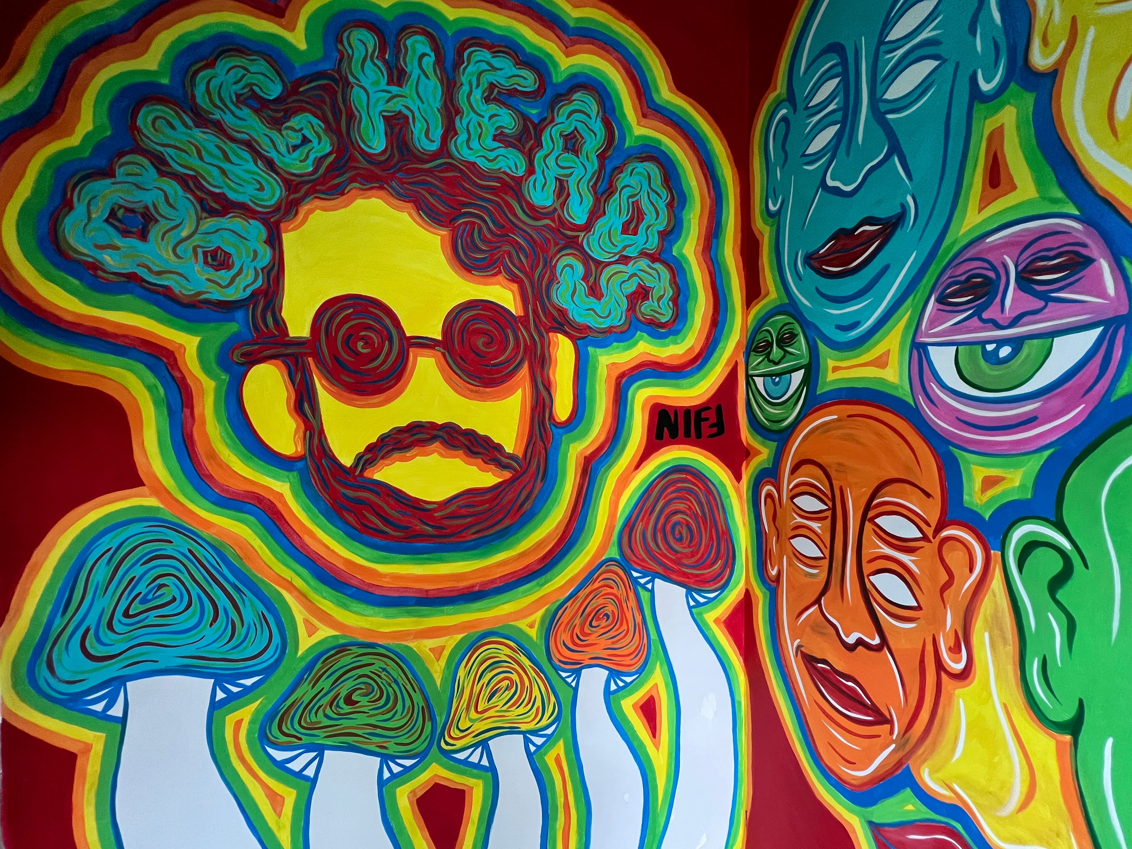 Big Heads Gift Shop is a love letter written by head shop connoisseurs. The vibe here is just as important as the quality products offered here. Step into a trippy wonderland, once you take your first step into our foyer you are greeted by our trippy Big Heads Mural. Come at night to see the mural come to life!